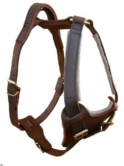 Nahkavaljas pehmustetulla etupanssarilla. Pitkät säätömahdollisuudet sekä etuosassa, että rungon ympäriltä. Vahvaa rasvanahkaa.