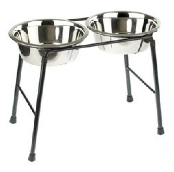 Ruokabaariteline kahdella ruostumattomalla teräskupilla. Kuppien koko 1,6 l. Telineen korkeus 300mm.