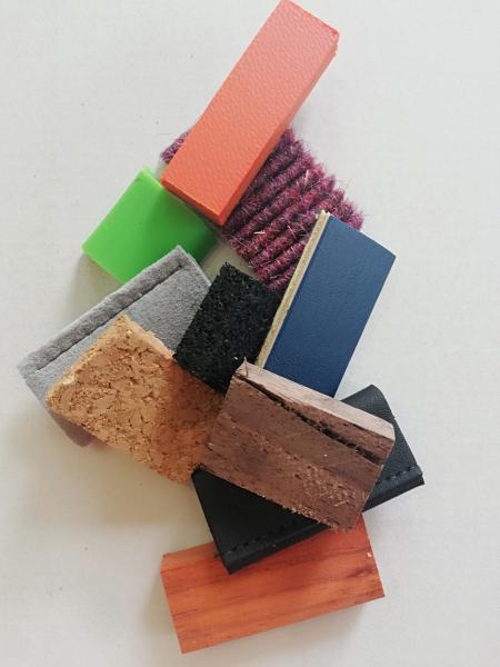 Myös esineiden materiaali vaihtelee, sisältää mm korkkia, nahkaa, puuta, muovia ja kangasta.