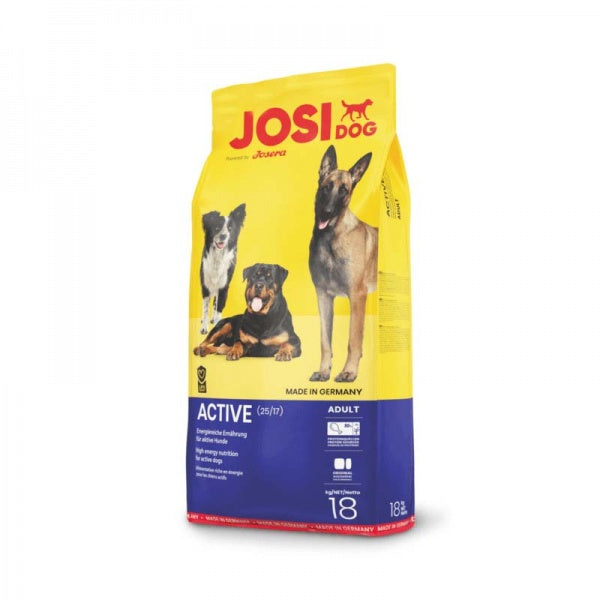 Josera JosiDog Premium Line Active-Aktiivisille aikuisille koirille. Josera JosiDog Premium Line Activen koostumus on kehitetty erityisesti paljon liikkuvan koiran tarpeisiin.