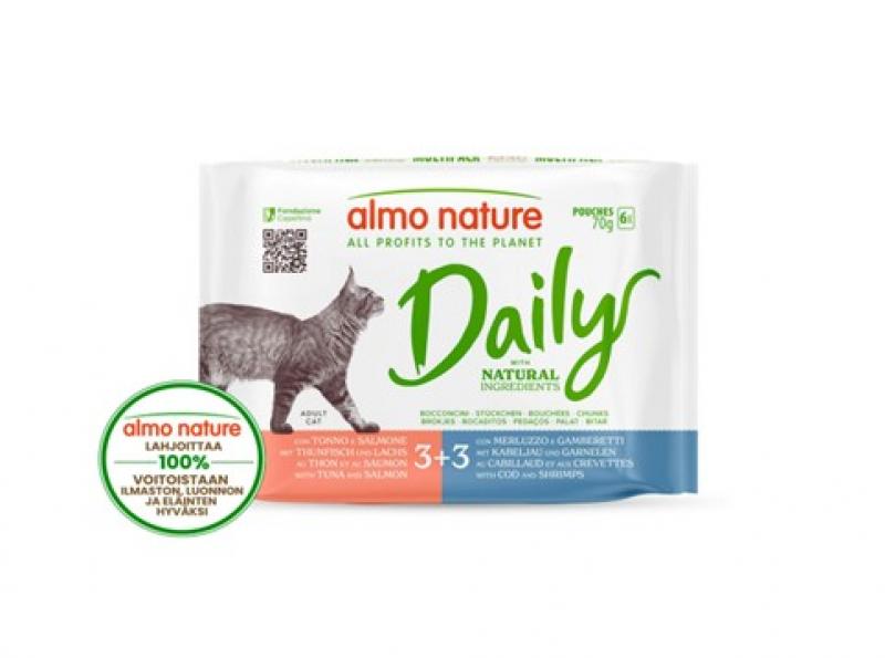 Almo Nature DAILY CAT Multipack tonnikala-lohi & turska-katkarapu 6 x 70g kissan märkäruoka