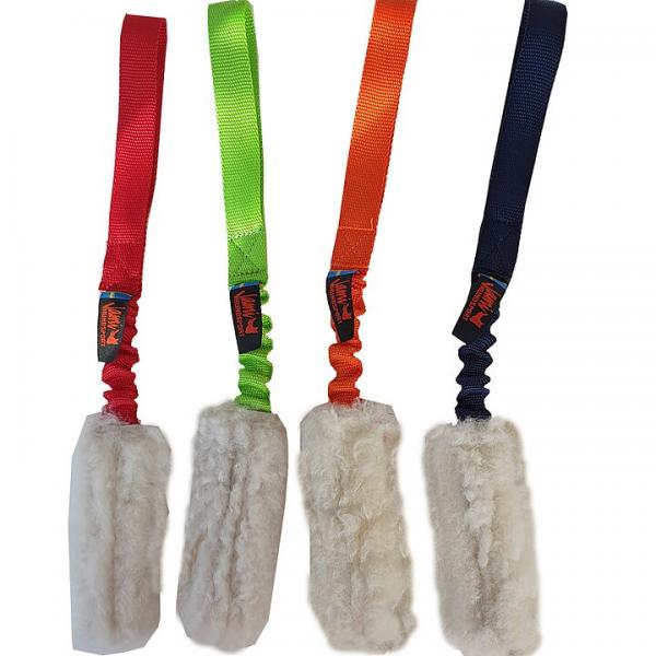 Pehmeä lampaannahkainen lelu joustonarulla. Saatavana 2 kokoa.