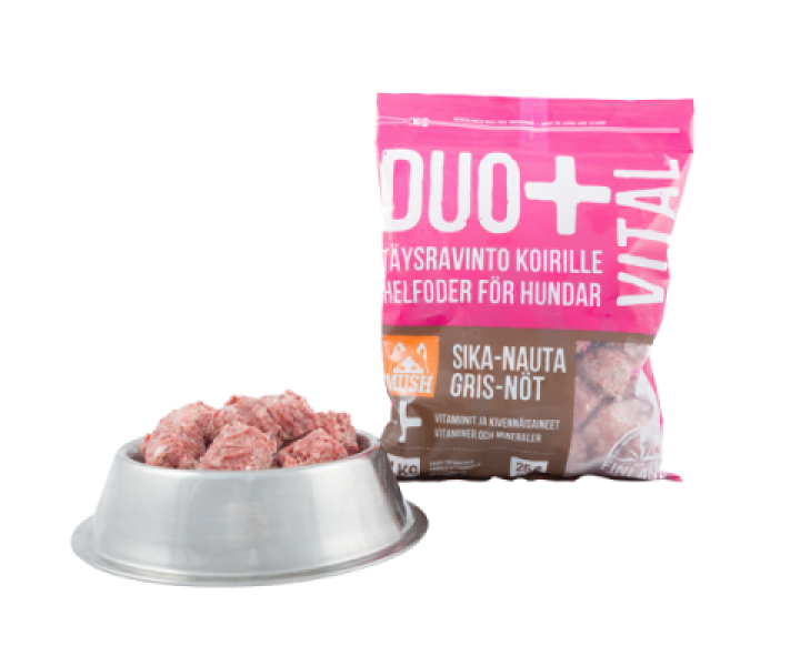MUSH DUO+ ® VITAL sika-nauta on vitaminoitu täysravintomme kaikille koirille, joka on kehitetty sinulle joka haluat antaa koirallesi lajityypillistä ruokaa, unohtamatta helppokäyttöisyyttä!