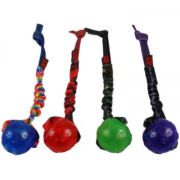 Kong-pallo vingulla 4 herkullisessa värissä. Pallon halkaisija on noin 65 mm.