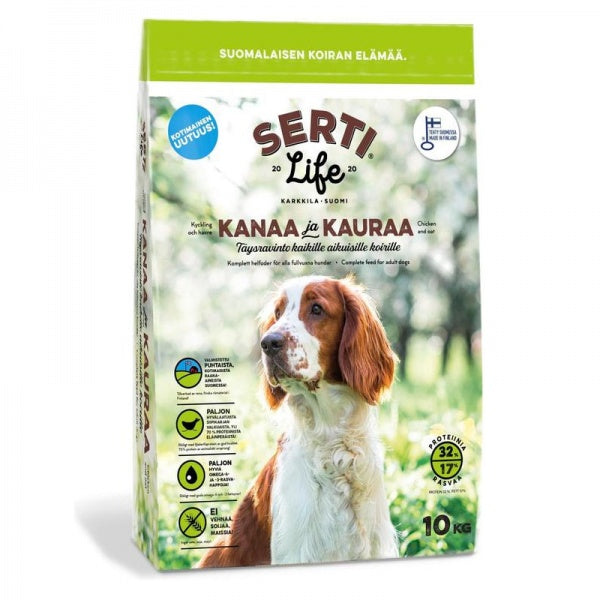 SertiLife kana-kaura täysravinto koirille sisältää runsaasti hyvälaatuista suomalaista siipikarjan valkuaista sekä hyvin sulavia ja monipuolisia kotimaisia eläin- ja kasvisrasvoja.