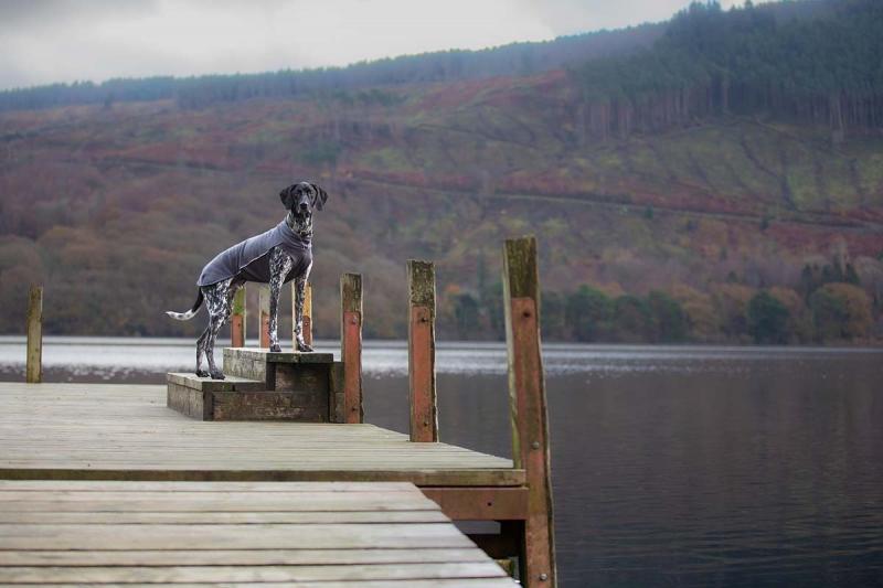 JumppaPomppa Graphite on monikäyttöinen ja lämmin koiran fleecepaita ympärivuotiseen käyttöön. Sen selkäosa on sähköistymätöntä neulosta, jonka erinomainen joustavuus tekee paidasta helposti puettavan ja miellyttävän päällä. JumppaPompan alaosa on vettä ja kuraa hylkivää lämpötrikoota, joka suojaa koiran vatsaa ja rintaa. Sähköistymättömat materiaalit eivät takuta pitkäkarvaisenkaan koiran turkkia.