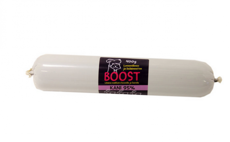 BOOST makkarat sisältävät ihmisravinnoksi kelpaavaa eurooppalaista lihaa. Monikäyttöinen makkara on helposti pilkottavissa namipaloiksi. BOOST lemmikin lihamakkara on koostumukseltaan tiivis, ei hajoa eikä tahmaa namipussissa.