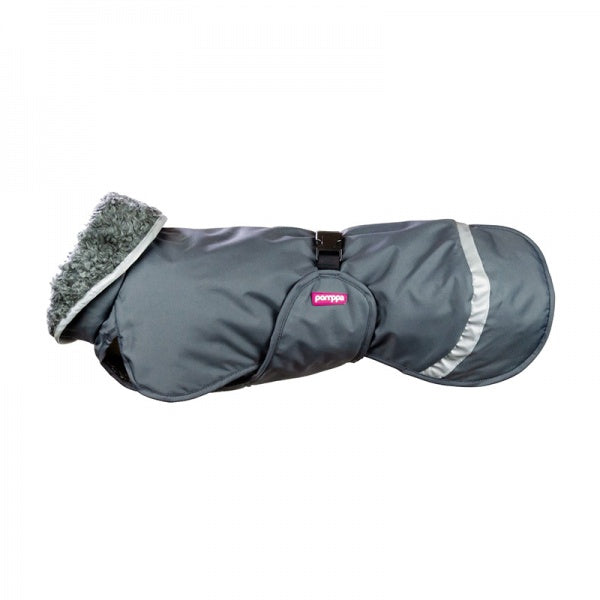 Lämmin takki toimii erinomaisena talvitakkina paksuturkkisille koirille. Kylmänaremmille koirille PerusPomppa on parhaimmillaan kolmen vuodenajan käytössä. Erinomaisen muotoilunsa ansiosta PerusPomppa Graphite suojaa tehokkaasti koiran selkää, niskaa, vatsaa sekä takaosaa. Takin pelkistetty malli takaa istuvuuden monen muotoisille koirille, ja sen pukeminen on nopeaa ja vaivatonta.